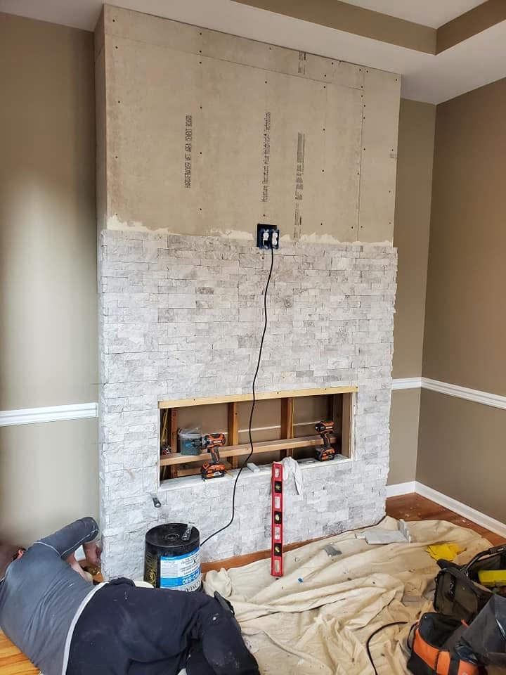 "Dave painted our living room, dining room, and hallway. While doing so I mentioned I’ve always wanted a nice mantle. 'I can do that,' he said. We picked out the material together and just like that, Dave the painter//magician built a beautiful mantle. His talents seem endless. Dave is talented, creative, and easy to have around your house."
